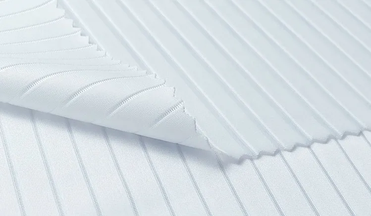Smooth & Textured—Warp-knitted textured stripe fabric features fine, raised stripe details that create a subtle 3D texture while maintaining a smooth, soft, and skin-friendly feel.
